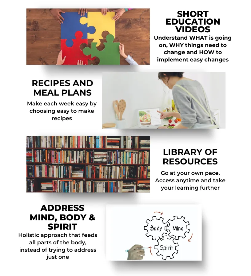Doctors and practitioners often don’t have the time or framework to help women stay consistent, motivated, and supported through real-life challenges. So women fall back into familiar habits, even when those habits leave them feeling inflamed, exhausted, and disconnected from themselves.